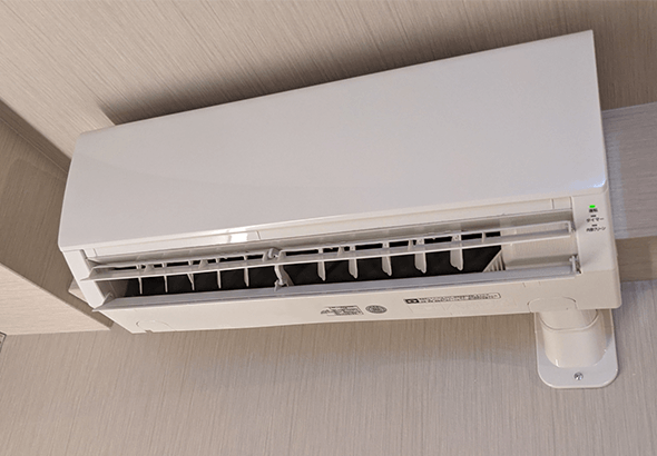 ※エアコン正面の床に脚立を設置する必要が有りますので、ロケーションによっては施工が難しい場合がございます。