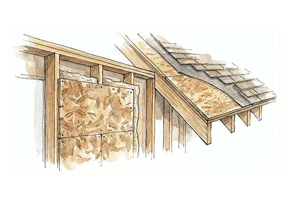 断熱性や遮音性を期待して、壁の内側や屋根の下地材として使用されることがあります。